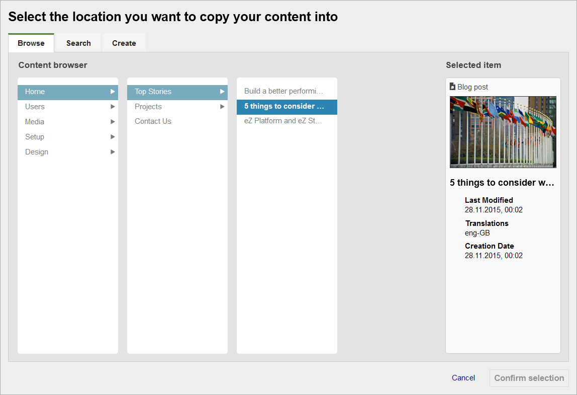 • In Universal Discovery Widget (UDW) the browse view now uses a completely new browser widget, which replaces Treeview. This solves limitations on how many items you can browse for, and provides a more intuitive user experience.